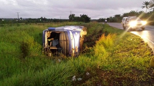 Por volta das 05h40 da manhã desta segunda-feira, 10, um ônibus da empresa Águia Branca se envolveu em acidente entre as cidades de Nazaré das Farinhas e Salinas, no recôncavo baiano. De acordo com a Polícia Rodoviária Estadual, o acidente foi provocado após o motorista do ônibus evitar a colisão um animal que estava na pista. O condutor do ônibus perdeu o controle do veículo e tombou numa ribanceira. O ônibus fazia linha Porto Seguro X Bom Despacho.