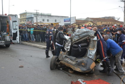 O motorista do caminhão ficou preso às ferragens. O primeiro veículo atingido, onde estava a mulher que morreu, ficou completamente destruído. Os bombeiros atuaram no local para retirar as outras quatro pessoas que estavam nele. As vítimas foram socorridas por equipes do Serviço de Atendimento Móvel de Urgência (Samu) e do Corpo de Bombeiros.