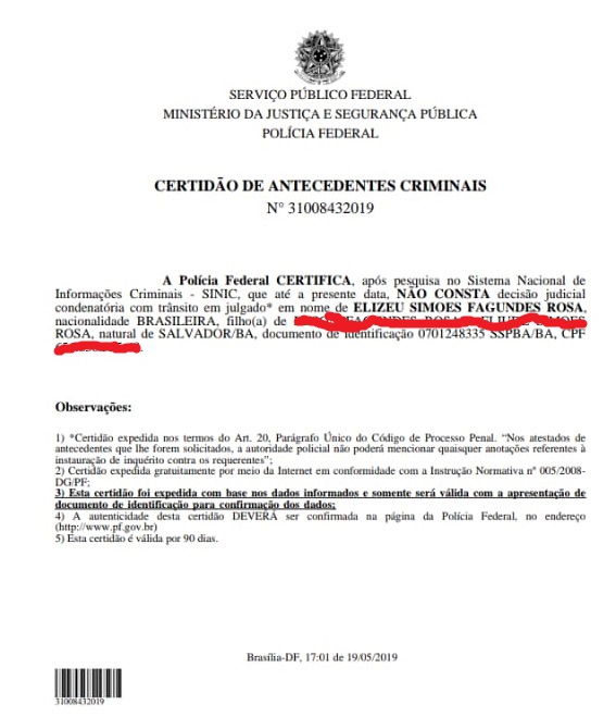 Visando esclarecer a verdade a redação solicitou as certidões da polícia civil e federal, e ficou constatado que o suposto pastor ENOQUE OLIVEIRA ESTÁ MENTINDO NA REDES SOCIAIS E NOS GRUPOS DE WHATSAPP, cabe ao Jornalista Elizeu Rosa entra com ação por danos morais, passar e divulgar informação de falso crime é crime.