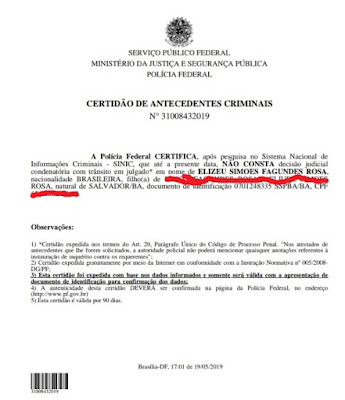 Nossa redação entrou em contato com a policia civil, Secretaria de Segurança Pública e com o tribunal de justiça da Bahia para ver se existe algum mandado de prisão ou processo de estupro contra Elizeu Simões Fagundes Rosa, e as informações desses órgão que é que não existem nenhuma mandado de prisão, queixa ou processos de estupro contra a pessoa do Jornalista Elizeu Rosa, os advogados do jornalista esclareceu que os integrante do grupo que são administradores e estão propagando as calunias e difamação poderão responder judicialmente e se for agente público serão denunciados nas corregedorias de policia, a policia milita e polícia civil informo que não exite policial militar ou agente de policia por nome ENOQUE OLIVEIRA.