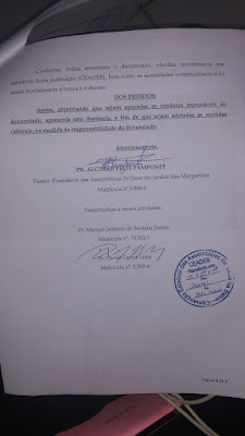 As denuncias são graves e precisa ser apuradas, a mesa diretora tem sido conivente com os desmandos do presidente, os pastores perguntam nos grupos porque ele não foi afastado? porque não foi tirando uma comissão para resolver ? até quando a mesa diretora vai ser conivente com os erros do presidente? porque até agora ele não foi punido? São dois pesos e duas medidas?.
