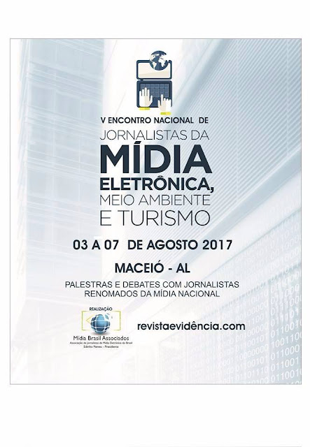 Entre os dias 03 e 07 de agosto estará acontecendo em Maceió- AL o “V Encontro Nacional de Jornalistas da Mídia Eletrônica, Meio Ambiente e Turismo”. Realização: revistaevidencia.com e Belle Accioly