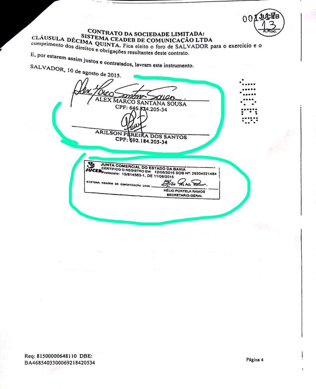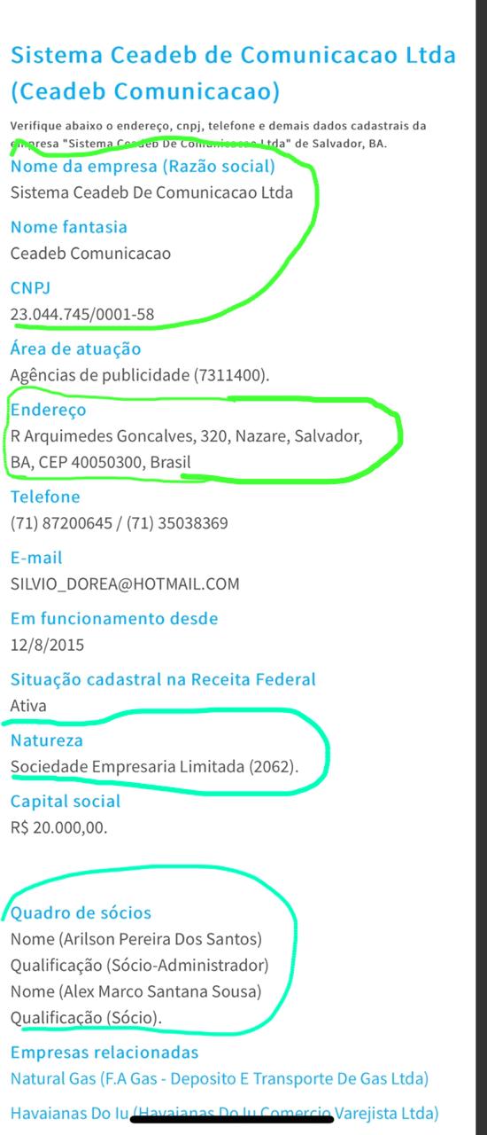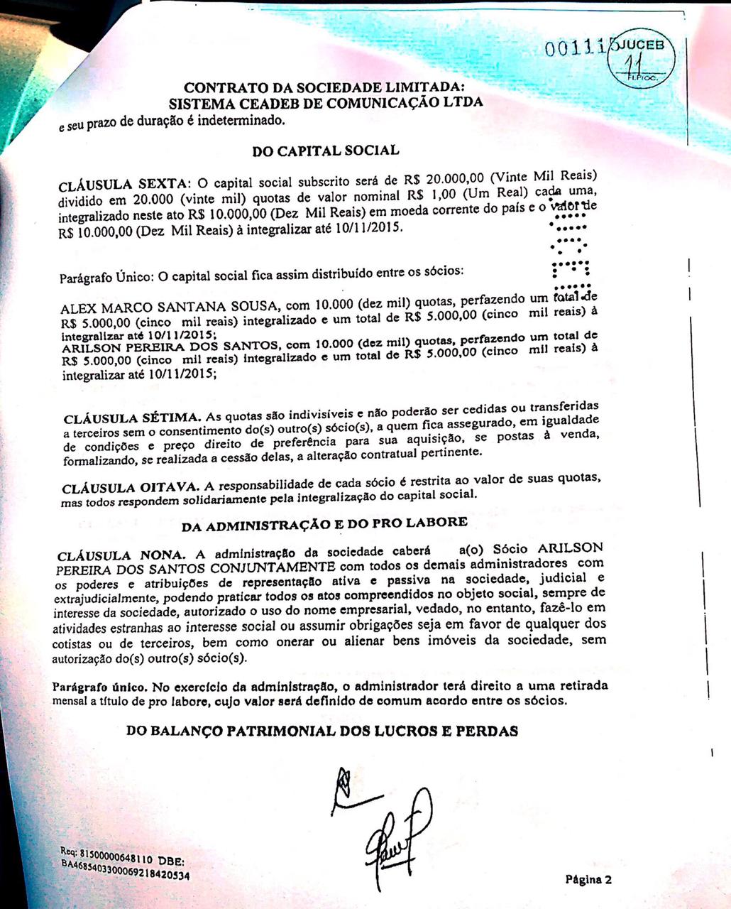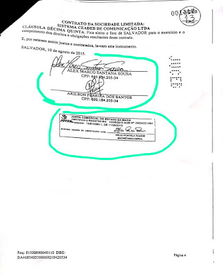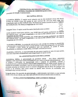Autorizou ARILSON E ALEX criarem uma Empresa de ( FACHADA ) com o nome CEADEB COMUNICAÇÃO onde os sócios são ;